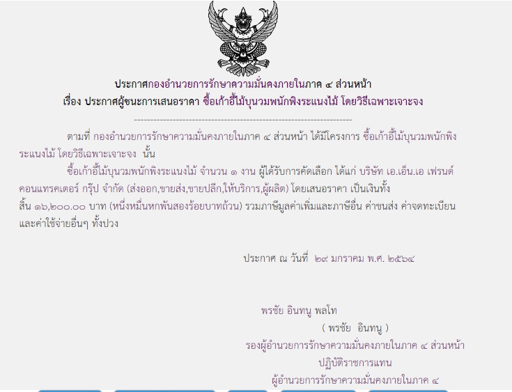 จัดซื้อ จัดจ้างประกาศผู้ชนะการเสนอราคา ประกาศผู้ชนะการเสนอราคา ซื้อเก้าอี้ไม้บุนวมพนักพิงระแนงไม้ โดยวิธีเฉพาะเจาะจง (16,200.00) February 7, 2021 657 Share Facebook Twitter Google+ Telegram LINE สกบ.กอ.รมน.ภาค 4 สน.