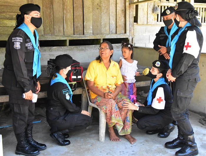 เมื่อวันที่ 19 ก.ค.63 เวลา 09.00 น. หน่วยเฉพาะกิจกรมทหารพรานที่ 33 จัดกำลังพล ชุดปฏิบัติการกิจการพลเรือนหญิง, ชุดปฏิบัติการกองร้อยทหารพรานที่ 3303 และชุดแพทย์เคลื่อนที่ ร่วมกับ พระครูพิศาลประชาทร ประธานพระธรรมทูตอาสา อำเภอบันนังสตา ลงพื้นที่แจกสิ่งของ อุปโภค – บริโภค ให้กับชาวบ้าน และพบปะเยี่ยมเยียนผู้ป่วยติดเตียง ผู้สูงอายุ เพื่อสร้างขวัญและกำลังใจให้กับชาวบ้าน ณ ชุมชนบ้านกาสังใน หมู่ที่ 6 ตำบลตาเนาะปูเต๊ะ อำเภอบันนังสตา จังหวัดยะลา