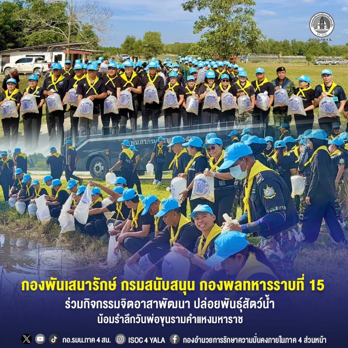 เมื่อวันที่ 16 มกราคม 2569 เวลา 09.00 น. กองพันเสนารักษ์ กรมสนับสนุน กองพลทหารราบที่ 15 ร่วมกับ ศูนย์ราชการอำเภอเทพา หน่วยเฉพาะกิจสงขลา และภาคประชาชน จัดกิจกรรมจิตอาสาพัฒนา ปล่อยพันธุ์สัตว์น้ำ เนื่องในวันพ่อขุนรามคำแหงมหาราช ณ อ่างเก็บน้ำทุ่งพระยอด ตำบลลำไพล อำเภอเทพา จังหวัดสงขลา โดยมี นายชูชีพ มหโชค ปลัดอำเภอหัวหน้ากลุ่มงานบริหารงานปกครอง เป็นประธานในพิธี