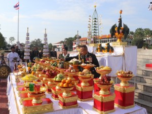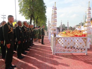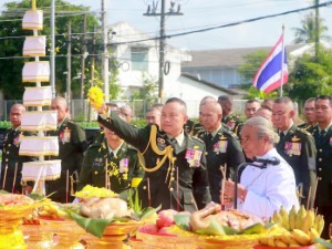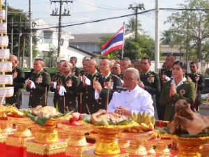 จากนั้น เวลา 09.50 น. ณ อาคารอเนกประสงค์ 1 กองบัญชาการกองทัพภาคที่ 4 พลโท นรธิป โพยนอก แม่ทัพภาคที่ 4 เป็นประธานประกอบพิธีสงฆ์ เพื่อทำบุญอุทิศถวายแด่สมเด็จพระนเรศวรมหาราช และดวงวิญญาณของบรรพบุรุษนักรบไทย ซึ่งการจัดพิธีในครั้งนี้ เพื่อแสดงออกถึงความสำนึกในพระมหากรุณาธิคุณของสมเด็จพระนเรศวรมหาราช ผู้ทรงเป็นวีรกษัตริย์นักรบ ผู้ปกป้องผืนแผ่นดินไทยให้คงความเป็นชาติสืบมาจนถึงปัจจุบัน