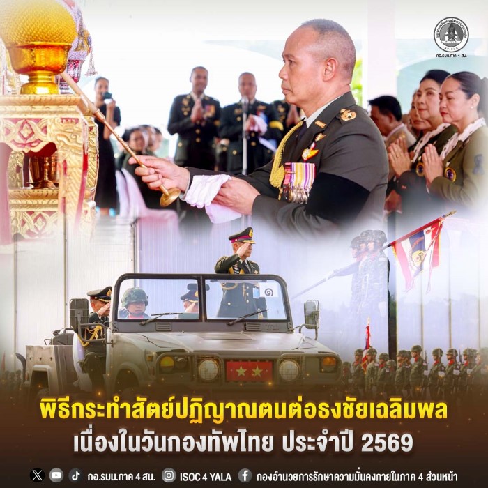 เมื่อวันที่ 18 มกราคม 2569 เวลา 15.00 น. มณฑลทหารบกที่ 46 จัดพิธีกระทำสัตย์ปฏิญาณตนต่อธงชัยเฉลิมพล เนื่องในวันกองทัพไทย ประจำปี 2569 ณ ลานพื้นแข็ง กองพลทหารราบที่ 15 ค่ายสมเด็จพระสุริโยทัย ตำบล บ่อทอง อำเภอ หนองจิก จังหวัด ปัตตานี โดยมี พลตรี ชาคริต อุจะรัตน รองแม่ทัพภาคที่ 4 / รองผู้อำนวยการรักษาความมั่นคงภายในภาค 4 ส่วนหน้า เป็นประธานในพิธี