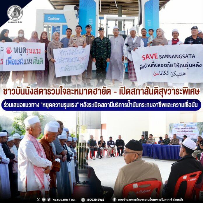 เมื่อวันที่ 19 มกราคม 2569 ณ สถานีบริการน้ำมัน ปตท. สาขาบันนังสตา อำเภอบันนังสตา จังหวัดยะลา หน่วยเฉพาะกิจกองพันทหารราบที่ 1 พร้อมด้วยส่วนราชการ, ผู้นำศาสนา และกลุ่มพลังมวลชนกว่า 150 คน รวมตัวจัดกิจกรรม “รณรงค์รวมพลังต่อต้านความรุนแรง” พร้อมประกอบพิธีทางศาสนาเพื่อสร้างขวัญและกำลังใจให้แก่ประชาชนในพื้นที่