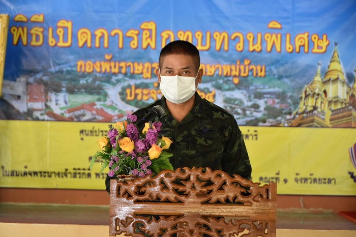 วันนี้ ( 8 กุมภาพันธ์ 2564 ) เวลา 09.00 น. ที่บ้านสีคง ตำบลลำใหม่ อำเภอเมือง จังหวัดยะลา พลตรี ไพศาล หนูสังข์ ผู้บัญชาการกองพลทหารราบที่ 15 / ผู้อำนวยการศูนย์ประสานงานโครงการอันเนื่องมาจากพระราชดำริ เป็นประธานพิธีเปิดการฝึกทบทวนโครงการราษฎรอาสารักษาหมู่บ้าน (อรบ.) กองพันราษฎรอาสาหมู่บ้าน อำเภอเมืองยะลา โดยมี พันเอก ธนุตม์ พิศาลสิทธิวัฒน์ ผู้บังคับการกรมทหารราบที่ 152 / หัวหน้าคณะทำงานโครงการอันเนื่องมาจากพระราชดำริ คณะที่ 1 จังหวัดยะลา พร้อมด้วย กำนัน ผู้ใหญ่บ้าน หัวหน้ากองพันราษฎรอาสารักษาหมู่บ้านจังหวัดยะลา และสมาชิกกองพันราษฎรอาสารักษาหมู่บ้านจังหวัดยะลาเข้าร่วมในพิธี
