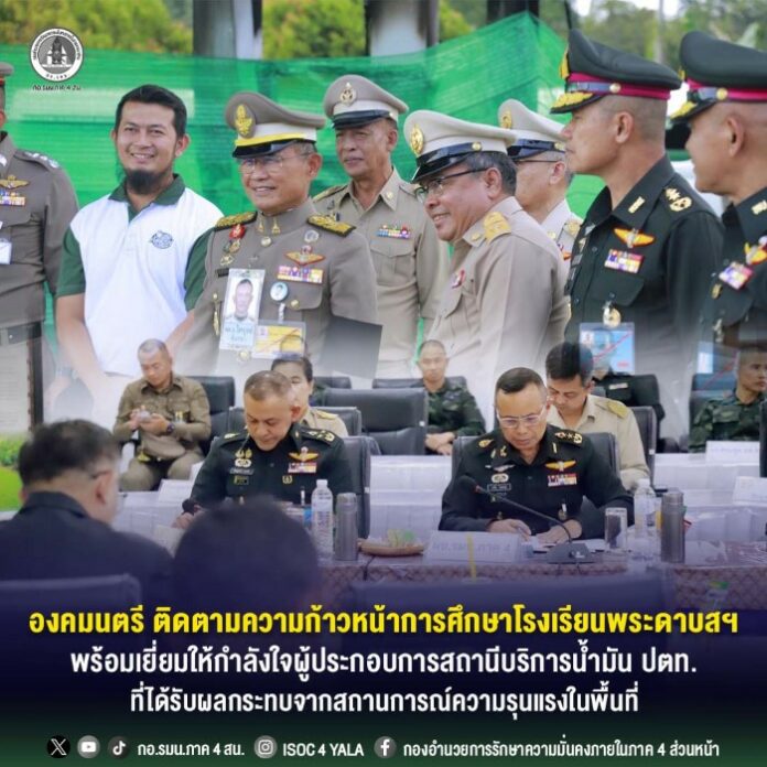 วันนี้ (19 มกราคม 2569) เวลา 13.00 น. พลเอก ไพบูลย์ คุ้มฉายา องคมนตรี ในฐานะประธานคณะกรรมการบริหารสถานศึกษาและคณะที่ปรึกษาโรงเรียนพระดาบสจังหวัดชายแดนภาคใต้ เป็นประธานการประชุมติดตามผลการดำเนินงาน โดยมี พลโท นรธิป โพยนอก แม่ทัพภาคที่ 4 / ผู้อำนวยการรักษาความมั่นคงภายในภาค 4, ผู้ว่าราชการจังหวัดยะลา, หัวหน้าส่วนราชการ, กำลังพลทหาร, ตำรวจ และฝ่ายปกครอง ร่วมให้การต้อนรับอย่างพร้อมเพรียง ณ ห้องประชุมใหญ่ ชั้น 3 อาคารเฉลิมพระเกียรติ 60 พรรษา โรงเรียนพระดาบสจังหวัดชายแดนภาคใต้ โดยมี นายพิทยา เพชรรักษ์ ผู้อำนวยการโรงเรียนพระดาบสจังหวัดชายแดนภาคใต้ พร้อมด้วยคณะกรรมการบริหาร และผู้แทนหน่วยงานด้านการศึกษา ร่วมรายงานผลการดำเนินงาน