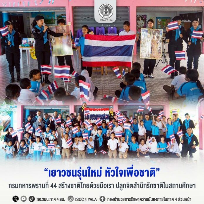 กรมทหารพรานที่ 44 โดยกำลังพลจิตอาสา 904 ร่วมกับ ชุดปฏิบัติการกิจการพลเรือน (ชป.กร.) จัดกิจกรรม “เยาวชนรุ่นใหม่ หัวใจเพื่อชาติ” ณ โรงเรียนชุมชนบ้านทุ่งคล้า หมู่ที่ 3 ตำบลทุ่งคล้า อำเภอสายบุรี จังหวัดปัตตานี เพื่อเสริมสร้างความสัมพันธ์อันดีระหว่างหน่วยงานภาครัฐกับสถานศึกษา และปลูกฝังคุณค่าความเป็นพลเมืองที่ดีให้กับเด็กและเยาวชนในพื้นที่