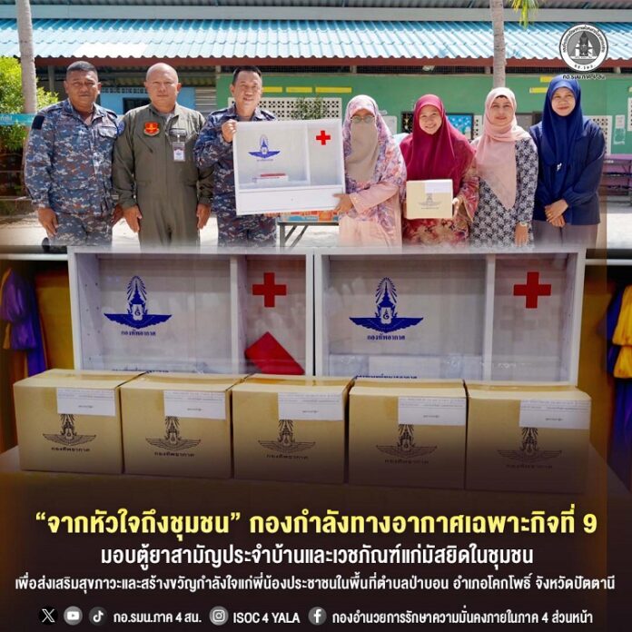 เมื่อวันที่ 23 มกราคม 2569 นาวาอากาศเอก รัชต์ภาคย์ ธรรมธีรศรี ผู้บังคับการกองกำลังทางอากาศเฉพาะกิจที่ 9 มอบหมายให้ นาวาอากาศเอก สราวุธ ปุริสังฆ์ รองผู้บังคับการกองกำลังทางอากาศเฉพาะกิจที่ 9 พร้อมด้วย นาวาอากาศเอก สุทธิชัย ศรีทองอุทัย รองเสนาธิการกองกำลังทางอากาศเฉพาะกิจที่ 9 ลงพื้นที่พบปะผู้นำท้องถิ่นและผู้นำศาสนา ณ องค์การบริหารส่วนตำบลป่าบอน อำเภอโคกโพธิ์ จังหวัดปัตตานี