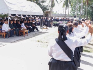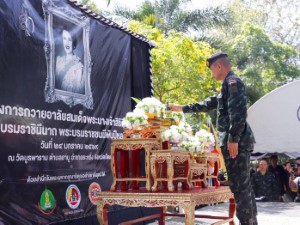 สำหรับพิธีในครั้งนี้ พลโท นรธิป โพยนอก แม่ทัพภาคที่ 4 / ผู้อำนวยการรักษาความมั่นคงภายในภาค 4 ได้กล่าวสดุดีถวายอาลัย ขณะที่ตัวแทนเยาวชนร่วมอ่านบทอาเศียรวาท พร้อมกับการแสดงธรรมลีลาจากพี่น้องนางรำ จากนั้นผู้ร่วมพิธีได้ร่วมกันขับร้องบทเพลง “ส่งนางฟ้ากลับสวรรค์” และ “เพลงสรรเสริญพระบารมี” ก่อนยืนสงบนิ่งเพื่อถวายอาลัยเป็นเวลา 93 วินาที ต่อมาแม่ทัพภาคที่ 4 ได้มอบเกียรติบัตรแก่นักเรียน และลงนามถวายอาลัยตามลำดับ