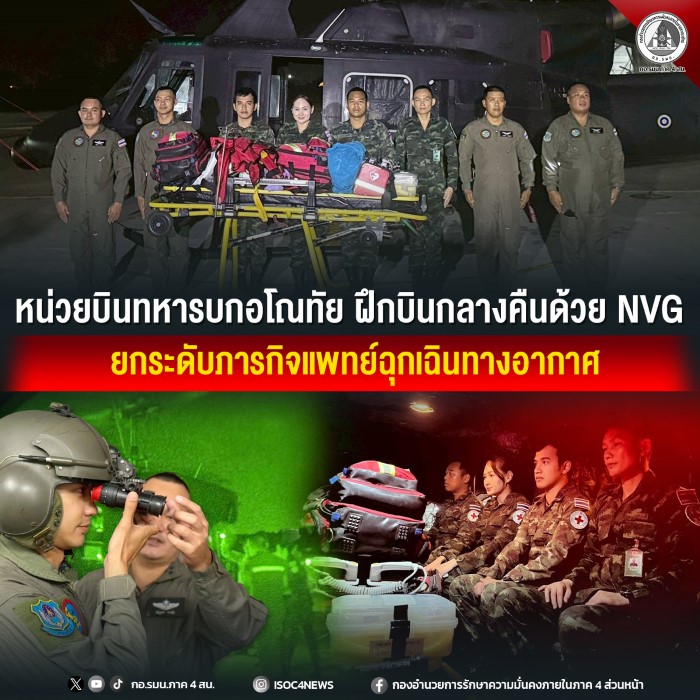 หน่วยบินทหารบกอโณทัย จัดอากาศยาน เฮลิคอปเตอร์ (ฮ.ท.212) ดำเนินการฝึกบินด้วยกล้องช่วยมองเห็นในเวลากลางคืน (Night Vision Goggles : NVG) ร่วมกับชุดแพทย์ส่งกลับทางอากาศ จากศูนย์แพทย์จังหวัดชายแดนภาคใต้ เพื่อเพิ่มขีดความสามารถในการช่วยเหลือผู้ป่วยฉุกเฉินและการปฏิบัติภารกิจในสภาวะแสงน้อย
