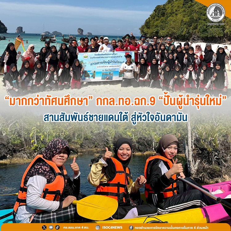 เพราะ “สันติสุข” เริ่มต้นจากการสร้างคน กองกำลังทางอากาศเฉพาะกิจที่ 9 เปิดพื้นที่แห่งการเรียนรู้ จัดกิจกรรมทัศนศึกษาเชิงสร้างสรรค์ นำนักเรียนชั้นมัธยมศึกษาปีที่ 4 จากโรงเรียนส่งเสริมอิสลามศึกษา เดินทางข้ามฝั่งสู่จังหวัดกระบี่ เพื่อบ่มเพาะเมล็ดพันธุ์แห่งผู้นำและการเสียสละเพื่อส่วนรวม
