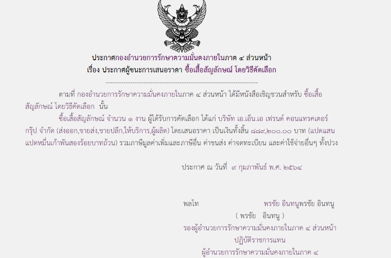 จัดซื้อ จัดจ้างประกาศผู้ชนะการเสนอราคา ประกาศผู้ชนะการเสนอราคา ซื้อเสื้อสัญลักษณ์ โดยวิธีคัดเลือก ( ๘๘๙,๒๐๐.๐๐ บาท ) February 9, 2021 1070 Share Facebook Twitter Google+ Telegram LINE กอ.รมน.ภาค ๔ สน.
