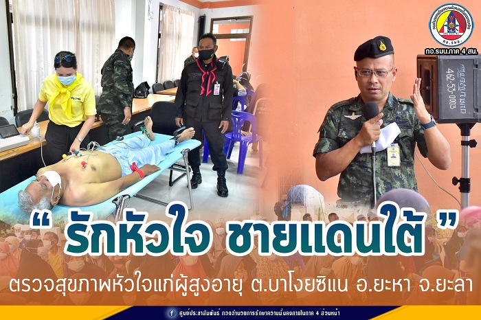 เมื่อวันที่ 9 กุมภาพันธ์ 2564 หน่วยเฉพาะกิจกรมทหารพรานที่ 47 ร่วมกับ ศูนย์อำนวยการแพทย์จังหวัดชายแดนภาคใต้, คณะขับเคลื่อนงานสุขภาพ ศูนย์อำนวยการจิตอาสาพระราชทานจังหวัดชายแดนภาคใต้, องค์การบริหารส่วนตำบลบาโงยซิแน และโรงพยาบาลส่งเสริมสุขภาพตำบลบาโงยซิแน ร่วมจัดโครงการ “รักหัวใจ ชายแดนใต้” โดยให้บริการตรวจสุขภาพหัวใจแก่ผู้สูงอายุในพื้นที่ ตำบลบาโงยซิแน อำเภอยะหา จังหวัดยะลา เพื่อเป็นการตรวจรักษาขั้นต้น และป้องกันการเกิดความผิดปกติของโรคหลอดเลือดหัวใจตีบในผู้สูงอายุ โดยมี พันเอกนายแพทย์โชคชัย ขวัญพิชิต ผู้อำนวยการศูนย์อำนวยการแพทย์จังหวัดชายแดนภาคใต้ เป็นหัวหน้าคณะฯ ณ ที่ทำการองค์การบริหารส่วนตำบลบาโงยซิแน อำเภอยะหา จังหวัดยะลา