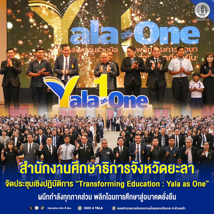 การประชุมเชิงปฏิบัติการ “Transforming Education : Yala as One สานพลังความร่วมมือ พลิกโฉมการศึกษา สู่อนาคตที่ยั่งยืน”ในครั้งนี้ จัดขึ้นโดยสำนักงานศึกษาธิการจังหวัดยะลา ร่วมกับหน่วยงานที่เกี่ยวข้อง เพื่อสร้างความร่วมมือในการพัฒนาการศึกษาที่สอดคล้องกับบริบทพื้นที่ ซึ่งมีความหลากหลายทางวัฒนธรรม ภาษา และวิถีชีวิต โดยมุ่งยกระดับคุณภาพผู้เรียน ลดความเหลื่อมล้ำ และสร้างโอกาสทางการศึกษาอย่างทั่วถึงและเท่าเทียม พร้อมพัฒนาทรัพยากรมนุษย์ให้มีศักยภาพรองรับการเปลี่ยนแปลงในอนาคต ทั้งนี้ จังหวัดยะลายังคงเผชิญความท้าทายหลายด้าน อาทิ ความเหลื่อมล้ำทางสังคมและเศรษฐกิจ ความเปราะบางของเด็กปฐมวัย และปัญหาการอ่านออกเขียนได้ ซึ่งเป็นรากฐานสำคัญของการเรียนรู้ตลอดชีวิต จึงจำเป็นต้องอาศัยความร่วมมือจากทุกภาคส่วนอย่างต่อเนื่อง