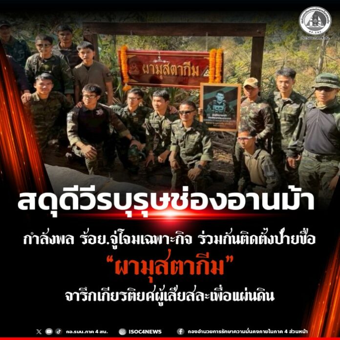 พันโท วรวิทย์ ทรัพย์เจริญ ผู้บังคับกองร้อยจู่โจมเฉพาะกิจ นำกำลังพลรบพิเศษทำพิธีติดตั้งป้ายชื่อ “ผามุสตากีม” ณ สมรภูมิช่องอานม้า เพื่อจารึกเกียรติยศและรำลึกถึงวีรกรรมของ ร้อยตรี มุสตากีม มาเจ๊ะมะ วีรบุรุษผู้พลีชีพปกป้องอธิปไตยของชาติอย่างกล้าหาญ การตั้งชื่อหน้าผานี้เป็นสัญลักษณ์แทนความรักและคำสดุดีแก่ทหารกล้าที่เสียสละชีวิต (ซาฮีด) เพื่อแผ่นดิน โดยมุ่งหวังให้ชื่อของวีรบุรุษคงอยู่คู่สมรภูมิแห่งนี้สืบไป และเป็นการสร้างขวัญกำลังใจให้แก่กำลังพลในพื้นที่