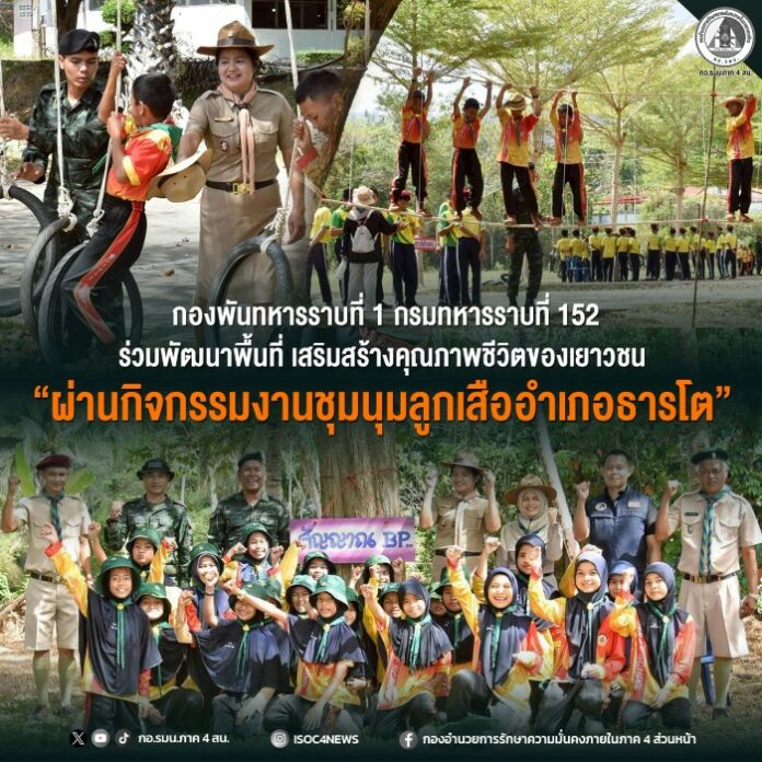 เมื่อวันที่ 10 กุมภาพันธ์ 2569 กองพันทหารราบที่ 1 กรมทหารราบที่ 152 จัดกำลังพล ร่วมกับหน่วยงานภาครัฐในอำเภอธารโต จัดกิจกรรมงานชุมนุมลูกเสืออำเภอธารโต ณ สนามฟุตบอลโรงเรียนนิคมสร้างตนเองธารโต ตำบลธารโต อำเภอธารโต จังหวัดยะลา เพื่อเสริมสร้างจิตสำนึกในการทำงานร่วมกันในชุมชน ซึ่งจะนำไปสู่การพัฒนาคุณภาพชีวิตของประชาชนในพื้นที่ให้ดีขึ้น และสร้างสังคมที่เข้มแข็งในระยะยาว โดยมีลูกเสือและเนตรนารีจาก 17 โรงเรียนในอำเภอธารโตและอำเภอเบตง ร่วมงานมากกว่า 1,700 คน