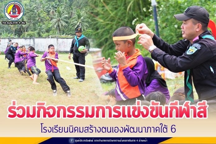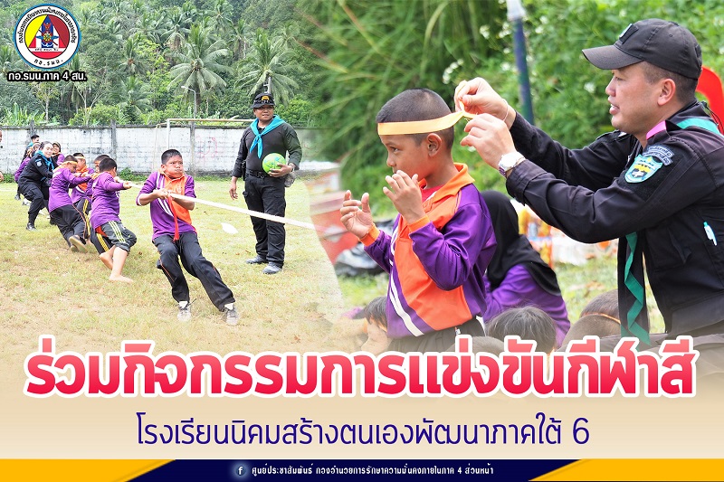 หน่วยเฉพาะกิจกรมทหารพรานที่ 30 ร่วมกับ ผู้นำหมู่บ้าน, ผู้อำนวยการโรงเรียน, คณะครู และบุคลากรทางการศึกษา ร่วมกิจกรรมการแข่งขันกีฬาสีกับน้อง ๆ นักเรียนโรงเรียนนิคมสร้างตนเองพัฒนาภาคใต้ 6 หมู่ที่ 10 ตำบลตลิ่งชัน อำเภอบันนังสตา จังหวัดยะลา เพื่อส่งเสริมพัฒนาการทางด้านร่างกาย อารมณ์ และสติปัญญา ตลอดจนมีเจตคติต่อการออกกำลังกาย การเล่นกีฬาอย่างถูกต้องและมีน้ำใจนักกีฬา รู้แพ้ รู้ชนะ รู้อภัย อีกทั้งเพื่อเป็นการพัฒนาทักษะทางด้านกีฬาให้แก่นักเรียน และเกิดการพัฒนาในทุก ๆ ด้านไปพร้อมกัน สร้างภูมิคุ้มกันและเสริมสร้างความเข้มแข็งให้กับนักเรียนโดยปราศจากปัญหายาเสพติดอย่างยั่งยืนตลอดไป โดยการแข่งขันเป็นไปอย่างคึกคัก มีกองเชียร์แต่ละสีร่วมสร้างสีสันและเข้าร่วมกิจกรรมกันอย่างสนุกสนาน
