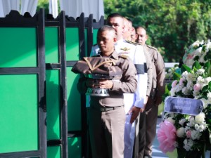 บรรยากาศภายในพิธี เป็นไปอย่างสมเกียรติและเต็มไปด้วยความโศกเศร้า โดยมี พลโท นรธิป โพยนอก แม่ทัพภาคที่ 4 / ผู้อำนวยการรักษาความมั่นคงภายในภาค 4, นายรัฐศาสตร์ ชิดชู ผู้ว่าราชการจังหวัดสงขลา, หัวหน้าส่วนราชการ คณะผู้บริหาร ครอบครัว เครือญาติ คณะครู นักเรียน และประชาชนจำนวนมากร่วมแสดงความอาลัย ท่ามกลางความอาลัยรักต่อผู้บริหารสถานศึกษาผู้ทุ่มเทแรงกายแรงใจเพื่อศิษย์และโรงเรียนมาโดยตลอด