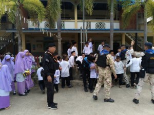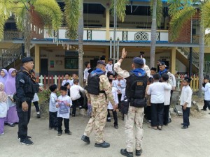 กองร้อยทหารพรานที่ 4914 หน่วยเฉพาะกิจกรมทหารพรานที่ 49 นำกำลังพลชุดปฏิบัติการกิจการพลเรือน พร้อมอาสาสมัครชุดคุ้มครองตำบลจะแนะ ลงพื้นที่ศูนย์การศึกษาอิสลามประจำมัสยิดตาดีกาบ้านบือแต อำเภอจะแนะ จังหวัดนราธิวาส ร่วมกิจกรรมหน้าเสาธง พบปะพูดคุยกับคณะครูและนักเรียนอย่างใกล้ชิด