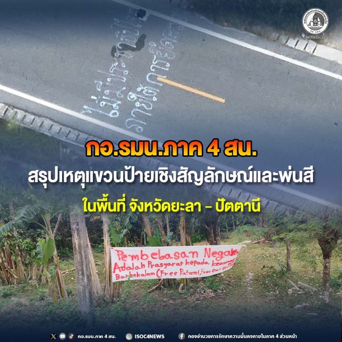 ตรวจพบการแขวนป้ายเชิงสัญลักษณ์ในพื้นที่ โดยมีข้อความลักษณะปลุกระดมปรากฏบนป้ายดังกล่าว