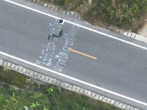 ตรวจพบการพ่นสีข้อความบนพื้นผิวถนน และมีการวางวัตถุต้องสงสัย จำนวน 1 จุด