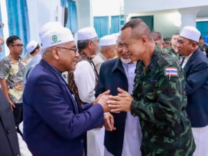 โอกาสนี้ แม่ทัพภาคที่ 4 ได้กล่าวพบปะผู้นำศาสนา โดยเน้นย้ำความสำคัญของการมีส่วนร่วมของผู้นำศาสนาในการดูแลประชาชนในพื้นที่ โดยเฉพาะการสร้างความเข้าใจให้ประชาชนปฏิบัติตามกฎหมาย การใช้เส้นทางเข้า-ออกที่ถูกต้องตามแนวชายแดน เพื่อป้องกันการกระทำผิดกฎหมาย การลักลอบค้ายาเสพติด และการก่อเหตุความรุนแรงในพื้นที่ อันจะนำไปสู่การสร้างสังคมที่ปลอดภัยและยั่งยืน พร้อมขอความร่วมมือทุกภาคส่วนร่วมกันพัฒนาพื้นที่เพื่ออนาคตของลูกหลานต่อไป พร้อมย้ำว่า ความมุ่งหวังของทุกภาคส่วน คือการทำให้เดือนรอมฎอนปราศจากเหตุร้าย และสามารถประกอบศาสนกิจได้อย่างสมบูรณ์