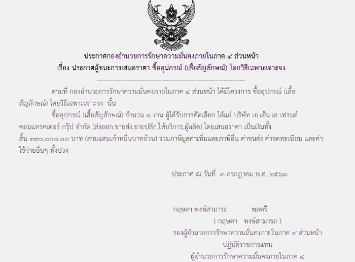 ประกาศผู้ชนะการเสนอราคา ซื้ออุปกรณ์ (เสื้อสัญลักษณ์) โดยวิธีเฉพาะเจาะจง