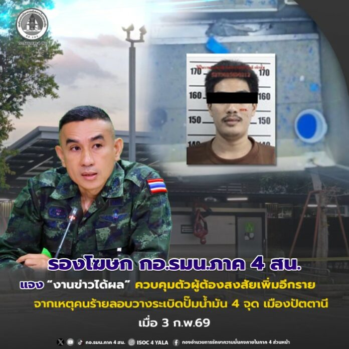 จากกรณีเหตุคนร้ายลอบวางวัตถุระเบิดในห้องน้ำสถานีบริการน้ำมัน ปตท.จำนวน 4 จุด ในพื้นที่อำเภอเมือง จังหวัดปัตตานี เมื่อวันที่ 3 กุมภาพันธ์ 2569 นั้น