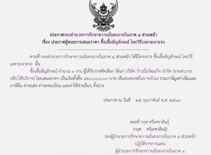 ประกาศผู้ชนะการเสนอราคา ซื้อเสื้อสัญลักษณ์ โดยวิธีเฉพาะเจาะจง