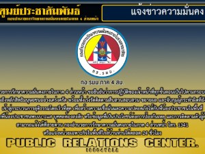 ทั้งนี้ หากพี่น้องประชาชนพบเบาะแส บุคคลต้องสงสัย หรือข้อมูลที่เป็นประโยชน์ต่อการป้องกันเหตุและการติดตามตัวผู้ต้องสงสัย สามารถแจ้งได้ที่สายด่วน กองอำนวยการรักษาความมั่นคงภายในภาค 4 ส่วนหน้า โทร. 1341 หรือแจ้งหน่วยเฉพาะกิจในพื้นที่ใกล้บ้านท่านได้ตลอด 24 ชั่วโมง