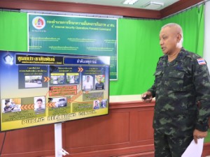 พันเอก ยุทธนาม เพชรม่วง โฆษกกองอำนวยการรักษาความมั่นคงภายในภาค 4 ส่วนหน้า แถลงความคืบหน้าเหตุคนร้ายลอบวางระเบิดบริเวณห้องน้ำสถานีบริการน้ำมันและสถานีขนส่งผู้โดยสาร จังหวัดปัตตานี
