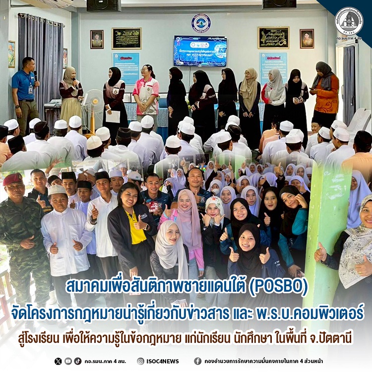สมาคมเพื่อสันติภาพชายแดนใต้ (POSBO) จึงได้กำหนดจัดโครงการกฎหมายน่ารู้เกี่ยวกับข่าวสาร และ พ.ร.บ.คอมพิวเตอร์ สู่โรงเรียน เพื่อให้ความรู้ในข้อกฎหมายแก่นักเรียน นักศึกษา สร้างภูมิคุ้มกันด้านองค์ความรู้ ความเข้าใจเกี่ยวกับพระราชบัญญัติว่าด้วยการกระทำความผิดเกี่ยวกับคอมพิวเตอร์และเพื่อให้สามารถใช้วิธีการสื่อสารผ่านระบบเครือข่ายอินเตอร์เน็ตได้อย่างถูกต้องเหมาะสมและลดจำนวนของประชาชนในสังคมชายแดนใต้ที่ตกเป็นเหยื่อหรือเครื่องมือของการใช้วาทกรรมเพื่อสร้างความขัดแย้งหรือสร้างความแตกแยกในสังคมบนโลกออนไลน์ ให้สามารถเป็นไปตามระบบและระเบียบของข้อกฎหมายในทิศทางเดียวกันซึ่งถือว่าเป็นกลุ่มบุคคลสุ่มเสี่ยงในสังคมที่มีการคลุกคลีการเข้าถึงสารสนเทศด้านสื่อออนไลน์มากที่สุดในสังคมปัจจุบัน ให้เขาเหล่านั้นได้เข้าใจต่อหลักการ วัตถุประสงค์ ลักษณะ กระบวนการบังคับใช้ในการกระทำผิดเกี่ยวกับคอมพิวเตอร์ในทิศทางเดียวกันต่อไป