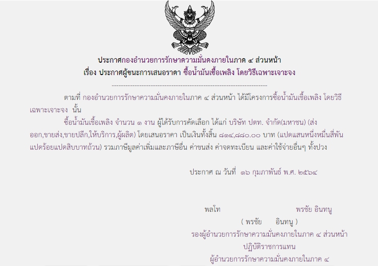 ประกาศผู้ชนะการเสนอราคา ซื้อน้ำมันเชื้อเพลิง โดยวิธีเฉพาะเจาะจง (814,880.00)