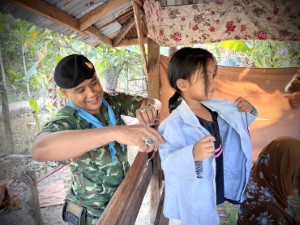 ในการนี้ เจ้าหน้าที่ได้มอบเสื้อผ้าให้แก่เด็กกำพร้าในชุมชน เพื่อเป็นการช่วยเหลือและแบ่งปันน้ำใจแก่เด็ก ๆ ที่ขาดแคลน ซึ่งเด็ก ๆ ต่างมีความดีใจและซาบซึ้งใจต่อความห่วงใยจากเจ้าหน้าที่ กิจกรรมดังกล่าวนับเป็นอีกหนึ่งการสร้างขวัญและกำลังใจ ตลอดจนส่งเสริมความเอื้ออาทรในสังคม และช่วยกระชับความสัมพันธ์อันดีระหว่างเจ้าหน้าที่รัฐกับประชาชนในพื้นที่อย่างต่อเนื่อง