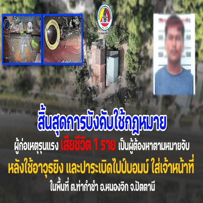 เมื่อวันที่ 11 มีนาคม 2569 หน่วยปฏิบัติการพิเศษร่วมประจำจังหวัดปัตตานี ได้รับแจ้ง จากด่านตรวจความมั่นคงในพื้นที่ตำบลท่ากำชำ อำเภอหนองจิก จังหวัดปัตตานี ว่าพบบุคคลต้องสงสัยมีพฤติกรรมแสดงท่าทีพิรุธขณะผ่านบริเวณด่านตรวจ เมื่อเจ้าหน้าที่แสดงตัวเพื่อขอทำการตรวจสอบตามขั้นตอนของกฎหมาย บุคคลดังกล่าวได้พยายามหลบหนี