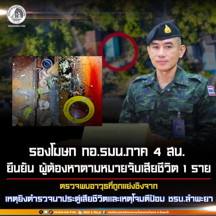 เมื่อวันที่ 12 มีนาคม 2569 พันเอก เอกวริทธิ์ ชอบชูผล รองโฆษกกองอำนวยการรักษาความมั่นคงภายในภาค 4 ส่วนหน้า เปิดเผยผลการปฏิบัติการบังคับใช้กฎหมายของเจ้าหน้าที่ฝ่ายความมั่นคงในพื้นที่จังหวัดชายแดนภาคใต้ เมื่อวันที่ 11 มีนาคม 2569 เวลาประมาณ 15.35 น. โดยระหว่างการปฏิบัติ เจ้าหน้าที่ได้เข้าควบคุมสถานการณ์ แต่กลับถกผู้ก่อเหตุรุนแรงใช้อาวุธปืนยิง และขว้างระเบิดแสวงเครื่องแบบไปป์บอมบ์ ใส่เจ้าหน้าที่ ทำให้เจ้าหน้าที่จำเป็นต้องดำเนินการตามขั้นตอนทางยุทธวิธีเพื่อควบคุมสถานการณ์ จนกระทั่งสถานการณ์ยุติลง