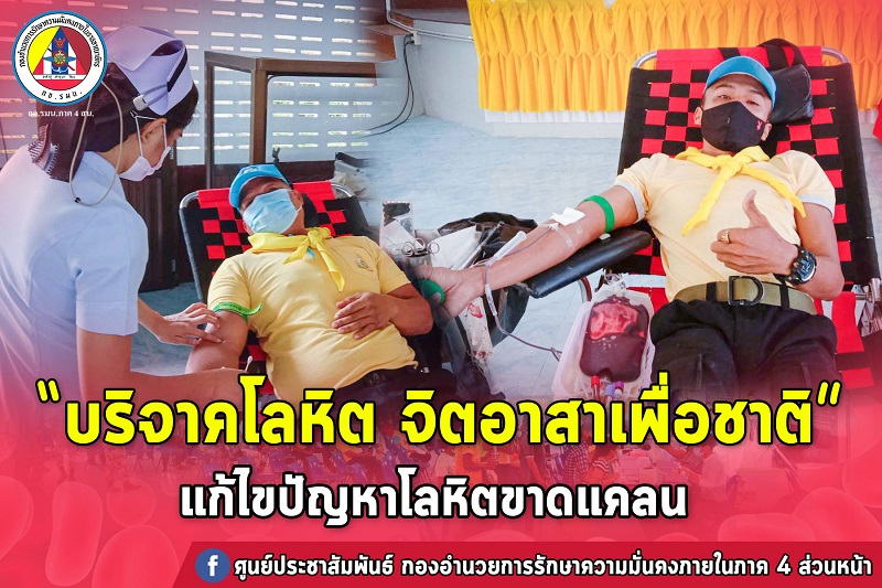 วันนี้ (18 กุมภาพันธ์ 2564) เวลา 08.30 – 12.00 น. หน่วยเฉพาะกิจกรมทหารพรานที่ 42 โดยฝ่ายกิจการพลเรือนของหน่วย พร้อมด้วย กำลังพลจิตอาสา กองร้อยทหารพรานในพื้นที่ ร่วมกับ ผู้นำท้องที่ ผู้นำท้องถิ่น และประชาชนจิตอาสา ร่วมกิจกรรมบริจาคโลหิต ตามโครงการ “บริจาคโลหิตจิตอาสาเพื่อชาติ” ให้กับหน่วยรับบริจาคโลหิตเคลื่อนที่ สำนักงานเหล่ากาชาดจังหวัดปัตตานี เพื่อแก้ไขปัญหาภาวะโลหิตสำรองในสถานพยาบาลต่าง ๆ ขาดแคลน จำนวน 175 นาย ได้โลหิต 36,900 ซีซี ณ หอประชุมที่ว่าการอำเภอมายอ ตำบลมายอ อำเภอมายอ จังหวัดปัตตานี