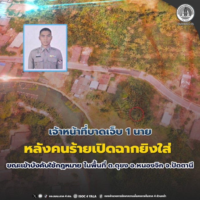 (วันนี้ 16 มีนาคม 2569) เวลา 09.00 น. กอ.รมน.ภาค 4 สน. เข้าบังคับใช้กฎหมายในพื้นที่ตำบลตุยง อำเภอหนองจิก จังหวัดปัตตานี เพื่อติดตามกลุ่มผู้ก่อเหตุความไม่สงบในพื้นที่