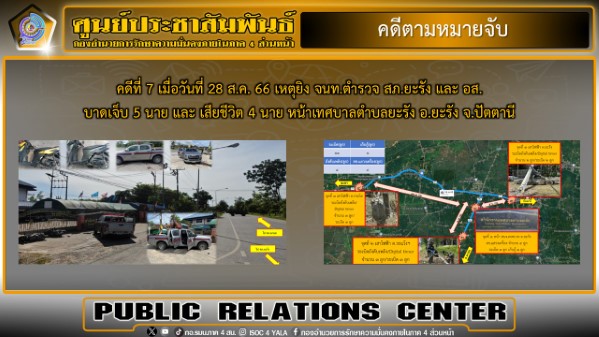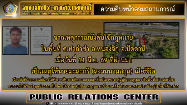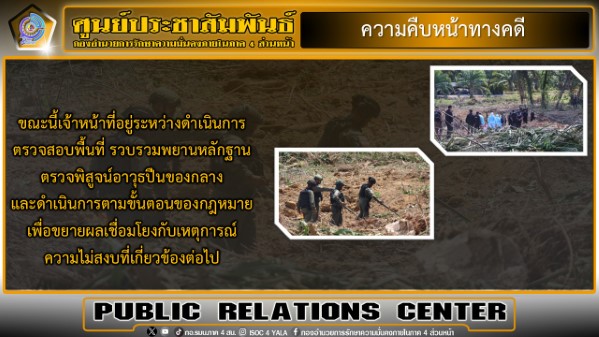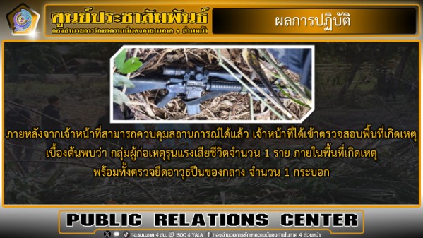 ขณะนี้เจ้าหน้าที่อยู่ระหว่างดำเนินการตรวจสอบพื้นที่ รวบรวมพยานหลักฐาน ตรวจพิสูจน์อาวุธปืนของกลาง และดำเนินการตามขั้นตอนของกฎหมาย เพื่อขยายผลเชื่อมโยงกับเหตุการณ์ความไม่สงบที่เกี่ยวข้องต่อไป
