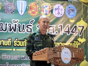 ในโอกาสนี้ พลตรี กรกฎ ภู่โชติ รองแม่ทัพภาคที่ 4 / รองผู้อำนวยการรักษาความมั่นคงภายในภาค 4 ส่วนหน้า ได้กล่าวเปิดงานและพบปะกับพี่น้องประชาชนว่า “ทุกครั้งที่ผมได้เดินทางมาที่นี่ ผมรู้สึกถึงความอบอุ่นจากพี่น้องทุกคนเสมอ เดือนรอมฎอนเป็นเดือนแห่งความเมตตา ความเสียสละ และการทำความดี ผมขอชื่นชมพี่น้องทุกท่านที่ตั้งใจปฏิบัติศาสนกิจด้วยความศรัทธาและความบริสุทธิ์ใจ ผมเชื่อมั่นว่าเมื่อเราทุกคนยึดมั่นในคุณงามความดี ช่วยเหลือเกื้อกูลกัน และร่วมกันดูแลชุมชนของเรา พื้นที่แห่งนี้ก็จะเป็นพื้นที่แห่งความสงบสุขและความอบอุ่นสำหรับทุกคน”