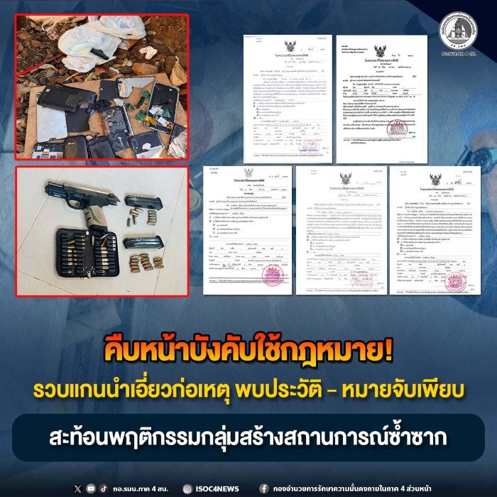 จากการบังคับใช้กฎหมายในพื้นที่ตำบลยุโป อำเภอเมือง จังหวัดยะลา เมื่อวันที่ 24 มีนาคม 2569 เวลา 06.00 น. เจ้าหน้าที่สามารถควบคุมตัวผู้ก่อเหตุรุนแรงได้จำนวน 3 ราย และเชิญตัวเจ้าของบ้าน1 ราย เข้าสู่กระบวนการซักถามตามขั้นตอนของกฎหมาย โดยมีรายละเอียดดังนี้