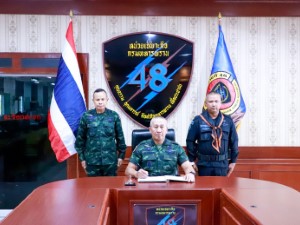 จากนั้น ผู้บัญชาการทหารบก พร้อมคณะฯ ได้เดินทางต่อไปยังหน่วยเฉพาะกิจกรมทหารพรานที่ 48 อำเภอเจาะไอร้อง จังหวัดนราธิวาส เพื่อตรวจเยี่ยมการปฏิบัติงานของหน่วยในพื้นที่รับผิดชอบ ซึ่งเป็นอีกหนึ่งหน่วยหลักที่ปฏิบัติภารกิจด้านการรักษาความปลอดภัยและดูแลความสงบเรียบร้อยของประชาชนในพื้นที่ชายแดน โดยได้รับฟังการบรรยายสรุปสถานการณ์ การปฏิบัติงานด้านการข่าว การรักษาความปลอดภัยพื้นที่หมู่บ้านและเส้นทาง รวมถึงการสร้างการมีส่วนร่วมของภาคประชาชนในการเฝ้าระวังภัยคุกคาม โดยมี พลตรี กรกฎ ภู่โชติ รองแม่ทัพภาคที่ 4 / รองผู้อำนวยการรักษาความมั่นคงภายในภาค 4 ส่วนหน้า ผู้บังคับหน่วยเฉพาะกิจกรมทหารพรานที่ 48 พร้อมด้วยผู้บังคับกองร้อยฯ และกำลังพลร่วมให้การต้อนรับ