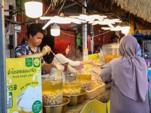 ประชาชนส่วนใหญ่เน้นเลือกซื้อวัตถุดิบเพื่อนำไปประกอบอาหารสำหรับครอบครัวและต้อนรับญาติมิตร ท่ามกลางบรรยากาศที่เต็มไปด้วยความคึกคัก อบอุ่น และสะท้อนวิถีชีวิตของชุมชนในช่วงเทศกาลสำคัญทางศาสนา