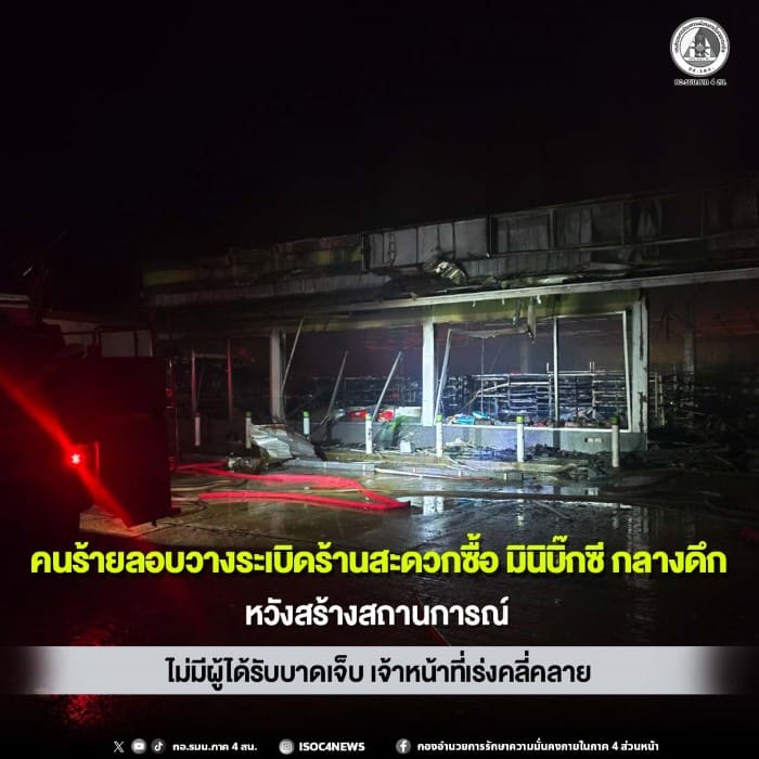 เมื่อวันที่ 20 มีนาคม 2569 เวลาประมาณ 03.00 น. ได้เกิดเหตุคนร้ายลอบวางระเบิดและวางเพลิงร้านสะดวกซื้อ มินิบิ๊กซี สาขาทุ่งยางแดง ในพื้นที่ หมู่ที่ 6 บ้านนัดฆอมิส ตำบลน้ำดำ อำเภอทุ่งยางแดง จังหวัดปัตตานี ส่งผลให้อาคารร้านได้รับความเสียหายจากแรงระเบิดและเพลิงไหม้