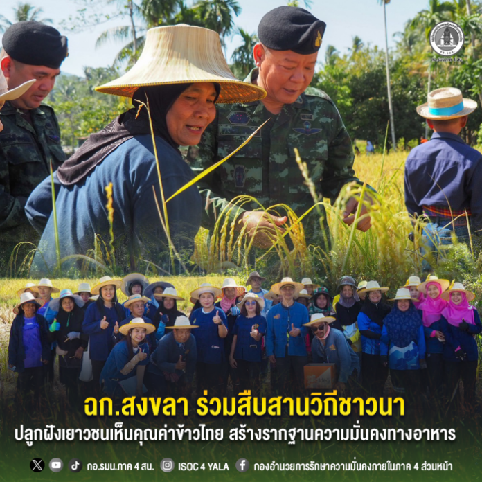 เมื่อวันที่ 24 มีนาคม 2569 เวลา 09.00 น. ที่ แปลงสาธิตโครงการโรงเรียนยุวชนชาวนา ตำบลท่าม่วง อำเภอเทพา จังหวัดสงขลา พันเอก ณรงค์ฤทธิ์ พูลทรัพย์ เสนาธิการหน่วยเฉพาะกิจสงขลา พร้อมด้วยเจ้าหน้าที่ทหาร นักเรียน ครู บุคลากรทางการศึกษา ผู้นำท้องที่ ผู้นำท้องถิ่น ผู้นำศาสนา และประชาชนในพื้นที่ เข้าร่วมกิจกรรม “Young Smart Farmer ยุวชนชาวนา ปีที่ 9” ภายใต้แนวคิด “เก็บข้าว เกี่ยวรัก” โดยมี นางสาวปรินดา ปาลาเร่ รองนายกองค์การบริหารส่วนจังหวัดสงขลา เป็นประธานในพิธีเปิดกิจกรรม ท่ามกลางบรรยากาศที่เต็มไปด้วยความร่วมมือและความอบอุ่นของคนในชุมชน