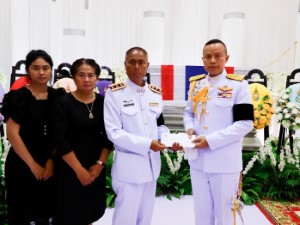 ในการนี้ พลโท นรธิป โพยนอก แม่ทัพภาคที่ 4 / ผู้อำนวยการรักษาความมั่นคงภายในภาค 4 ได้จุดธูปเทียนหน้าเครื่องบูชากระบะมุก เพื่อเริ่มพิธีพระพิธีธรรมสวดพระอภิธรรมทำนองหลวง จำนวน 4 จบ จากนั้นมีพิธีทอดผ้าบังสุกุล และพิธีกรวดน้ำอุทิศส่วนกุศลแด่ผู้วายชนม์ ท่ามกลางบรรยากาศแห่งความโศกเศร้า โดยมี หัวหน้าส่วนราชการ ผู้บริหารองค์กรปกครองส่วนท้องถิ่น ข้าราชการตำรวจ ทหาร บุคลากรทางการศึกษา ครอบครัว ญาติ ตลอดจนพี่น้องประชาชนจำนวนมากเข้าร่วมพิธี เพื่อร่วมไว้อาลัยและให้กำลังใจแก่ครอบครัวผู้สูญเสีย