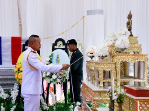 สำหรับการกำหนดจัดพิธีบำเพ็ญกุศลในวันเสาร์ที่ 21 มีนาคม 2569 เวลา 09.30 น. และพิธีพระราชทานเพลิงศพ ในเวลา 15.00 น. ณ วัดแหลมวัง อำเภอสทิงพระ จังหวัดสงขลา