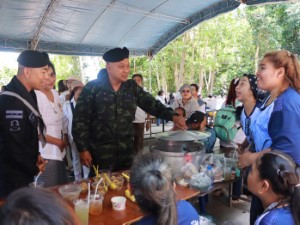 โอกาสนี้ พันเอก ยุทธนาม เพชรม่วง รองเลขาธิการกองอำนวยการรักษาความมั่นคงภายในภาค 4 ส่วนหน้า ได้กล่าวพบปะพี่น้องประชาชนว่า “ในวันนี้ พลโท นรธิป โพยนอก แม่ทัพภาคที่ 4 / ผู้อำนวยการรักษาความมั่นคงภายในภาค 4 ติดภารกิจ จึงได้ฝากความห่วงใยและความปรารถนาดีมายังพี่น้องประชาชนทุกคน ทั้งนี้ กองอำนวยการรักษาความมั่นคงภายในภาค 4 ส่วนหน้า ได้ดำเนินงานอย่างต่อเนื่องในการส่งเสริมและสนับสนุนให้พี่น้องประชาชนสามารถดำรงวิถีชีวิตตามความเชื่อและศรัทธา ภายใต้สังคมพหุวัฒนธรรมในพื้นที่จังหวัดชายแดนภาคใต้ โดยมีการขับเคลื่อนตั้งแต่ระดับนโยบาย พร้อมทั้งได้รับการสนับสนุนจากภาครัฐในการผลักดันกิจกรรมต่าง ๆ เพื่อสืบสานอัตลักษณ์และวิถีชีวิตของชุมชนของพี่น้องในพื้นที่ พร้อมกันนี้ยังเชื่อมั่นว่า การรวมพลังของพี่น้องประชาชนในวันนี้ จะเป็นอีกหนึ่งพลังสำคัญในการร่วมกันขับเคลื่อนสู่การสร้างสันติสุขที่มั่นคงและยั่งยืนในพื้นที่จังหวัดชายแดนภาคใต้ต่อไป”