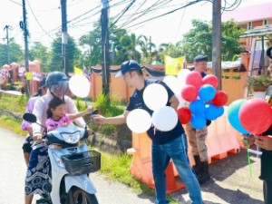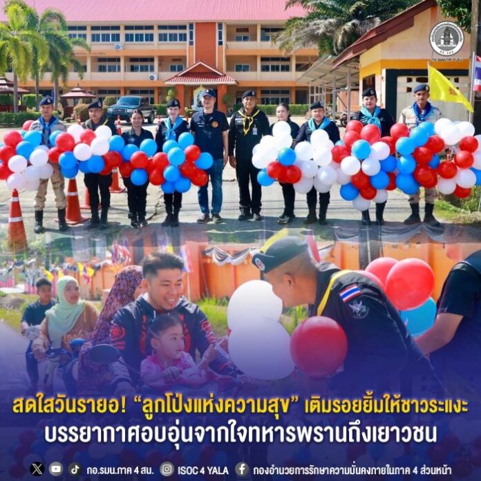 วันที่ 22 มีนาคม 2569 เวลา 09:30 น. หน่วยเฉพาะกิจกรมทหารพรานที่ 45 ผนึกกำลัง 3 ฝ่ายอำเภอระแงะ ร่วมส่งมอบความสุขเนื่องในเทศกาล “ฮารีรายอ” ณ ด่านตรวจ/จุดบริการประชาชนตันหยังมัส อำเภอระแงะ จังหวัดนราธิวาส ด้วยการมอบลูกโป่งหลากสีสันให้แก่พี่น้องประชาชน โดยเฉพาะเด็กและเยาวชนที่เดินทางกลับภูมิลำเนา ท่ามกลางบรรยากาศแห่งรอยยิ้ม ความอบอุ่น และความเป็นกันเอง สร้างความประทับใจตลอดเส้นทางการเดินทาง