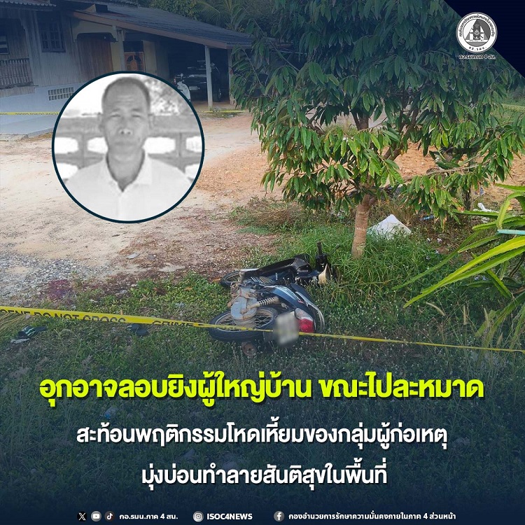 การก่อเหตุในลักษณะดังกล่าวจึงสะท้อนถึงพฤติกรรมอันโหดเหี้ยมของกลุ่มผู้ก่อเหตุ ที่มุ่งหวังบ่อนทำลายความสงบสุขของประชาชนในพื้นที่ ในการดูแลความสงบเรียบร้อย และการพัฒนาพื้นที่มาโดยตลอด การก่อเหตุในลักษณะดังกล่าวจึงสะท้อนถึงพฤติกรรมอันโหดเหี้ยมของกลุ่มผู้ก่อเหตุ ที่มุ่งหวังบ่อนทำลายความสงบสุขของประชาชนในพื้นที่