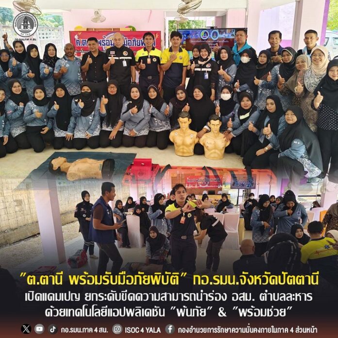 โดยกิจกรรมในครั้งนี้มุ่งเน้นการฝึกทักษะการรับมืออุทกภัย การปฐมพยาบาลเบื้องต้น และการกู้ชีพขั้นพื้นฐาน (CPR) พร้อมทั้งมีการฝึกปฏิบัติการใช้แอปพลิเคชัน “พ้นภัย” และ “พร้อมช่วย” รวมถึงการจัดระบบความคิดเพื่อวิเคราะห์และแก้ไขปัญหาในสภาวะวิกฤต ซึ่งถือเป็นยุทธศาสตร์ด้านมวลชนสัมพันธ์ที่สำคัญในการสร้างความเข้มแข็งให้แก่ชุมชนเป้าหมายที่มีสถิติความเสียหายจากอุทกภัยสูงที่สุดในจังหวัดปัตตานี เพื่อติดอาวุธทางปัญญาและทักษะชีวิต ลดความสูญเสีย และสร้างความเชื่อมั่นต่อภาครัฐในมิติด้านการป้องกันและบรรเทาสาธารณภัย