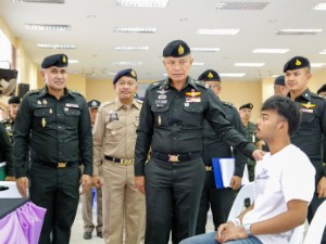 ในโอกาสเดียวกันนี้ แม่ทัพภาคที่ 4 ได้เดินตรวจเยี่ยมตามจุดต่างๆ พร้อมทั้งพบปะพูดคุยเพื่อมอบความห่วงใยและให้กำลังใจแก่ชายไทยผู้เข้ารับการตรวจเลือก ตลอดจนครอบครัวและญาติพี่น้องที่เดินทางมาเฝ้ารอให้กำลังใจอย่างใกล้ชิด พร้อมกันนี้ ได้กล่าวเชิญชวนชายไทยที่มีความมุ่งมั่นและมีอุดมการณ์ ให้ตัดสินใจร้องขอ (สมัคร) เข้ารับราชการเป็นทหารกองประจำการ ซึ่งนอกจากจะเป็นการทำหน้าที่ชายไทยในการรับใช้ชาติอย่างสมเกียรติแล้ว กองทัพบกยังพร้อมที่จะดูแล ส่งเสริมการศึกษา และฝึกอาชีพ เพื่อพัฒนาให้เป็นบุคลากรที่มีคุณภาพของประเทศชาติต่อไป